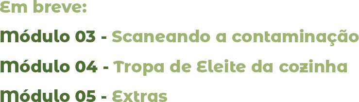 São materiais usados pela minha empresa, a NutriControl, uma das empresas de consultoria mais reconhecidas no Brasil, quando o assunto é segurança dos alimentos. São verdadeiras ferramentas, que te ajudarão a aplicar as melhores práticas no seu dia a dia, tudo que você vai aprender na formação, conseguirá aplicar! Saberá como ser um verdadeiro tutor dos alimentos e conseguirá rastrear problemas de forma antecipada, para garantir a sua tranquilidade ou a do seu chef, quando qualquer fiscalização ou auditoria bater!